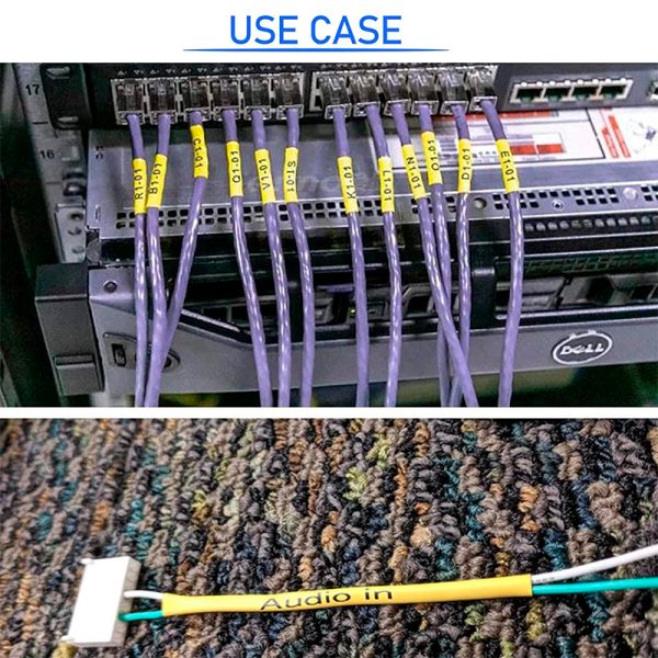 Después de imprimir las etiquetas, utiliza aire caliente (como un secador de pelo) para pegar completamente las etiquetas a los cables.