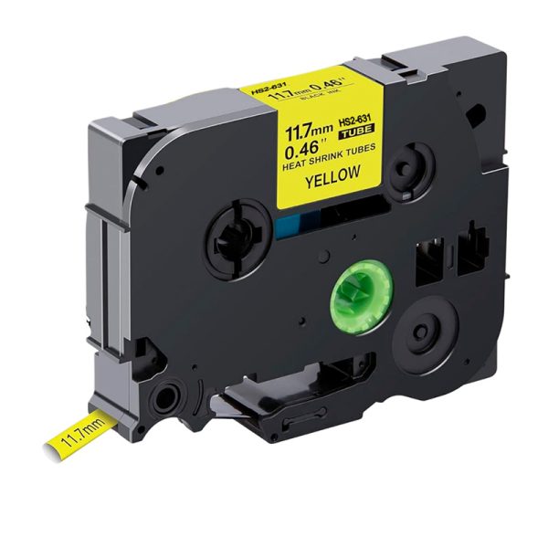 Cinta Brother HSe-631E HS2-631 11.7mm X 1.5mts. Compatible Nuevo Termocontraible Letra negra sobre amarillo, Compatible