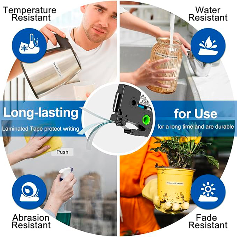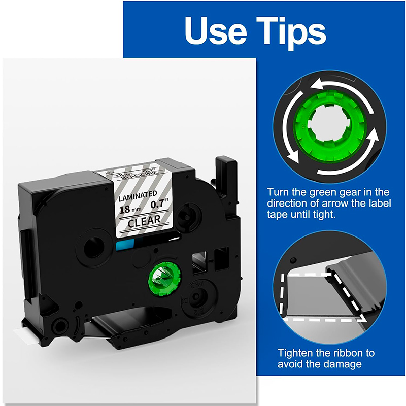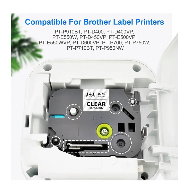 Las Cinta Brother Tze-141 Tz2-141 18mm x 8mts, Compatible Nuevo Letra Negra sobre Transparente; están diseñadas para durar incluso bajo condiciones extremas y son capaces de aguantar temperaturas extremas, luz solar, agua, sustancias químicas o la abrasión.