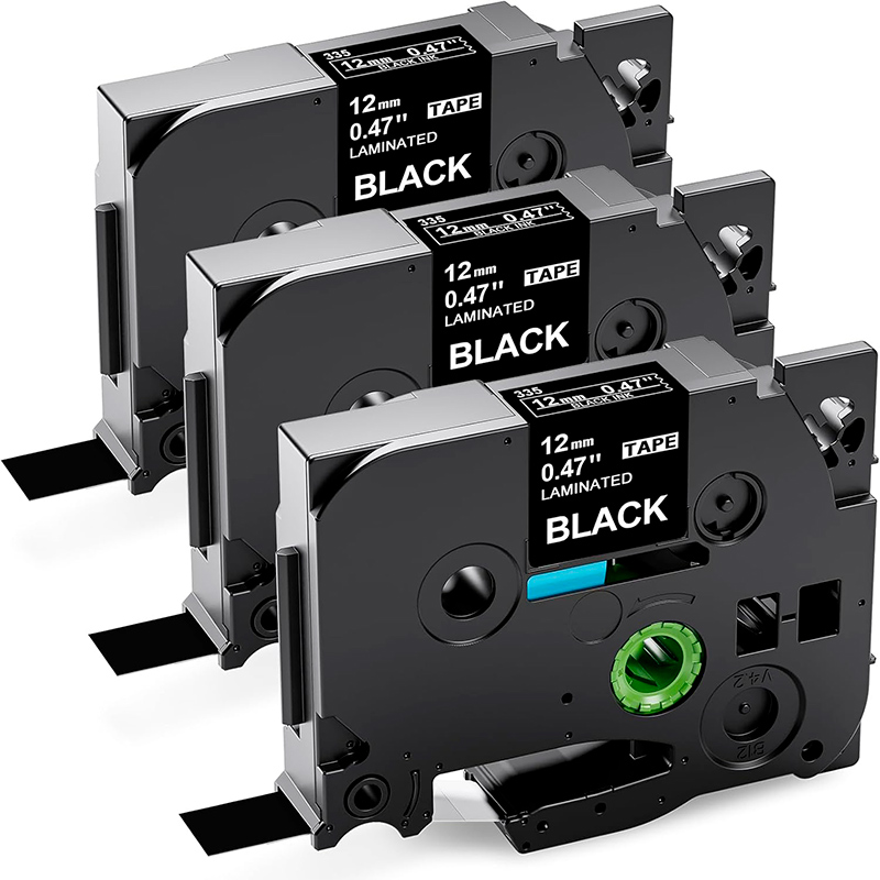 Cinta Brother Tze-335 Tz2-335 (12mm x 8 mts) letra blanca sobre fondo negro Compatible, Utilizable en las rotuladoras electrónicas que muestran el logotipo TZ y TZe. Utilizadas para un etiquetado general en superficies lisas y planas, crean etiquetas claramente legibles por mucho tiempo.