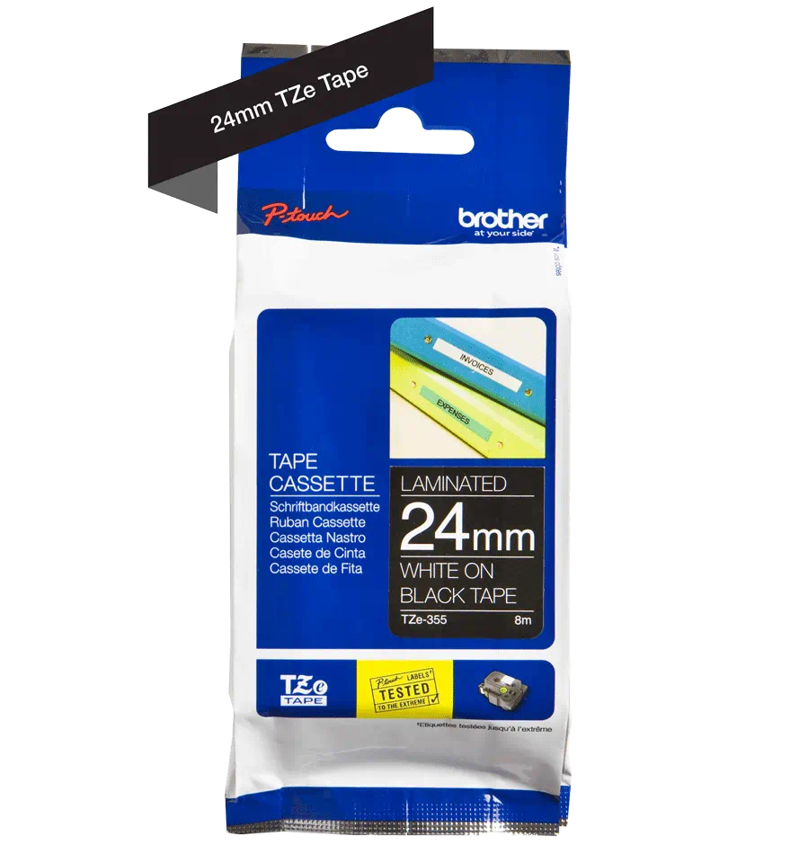 Cinta Brother TZE-355 Blanco sobre Negro 24mm 1 x 8 mts