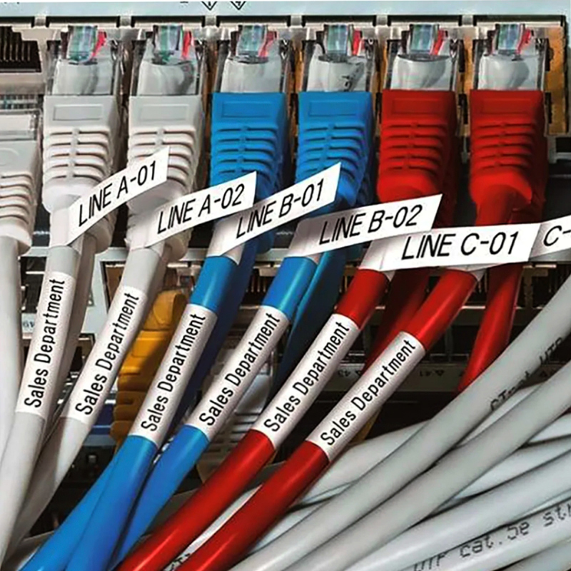Se utiliza para etiquetar cables y alambres que se adhieren de forma segura a varias superficies, manteniendo su adhesión incluso en condiciones extremas de calor y frío. Con su resistencia a la humedad y a la suciedad, son muy adecuados para una amplia gama de usos en interiores y exteriores