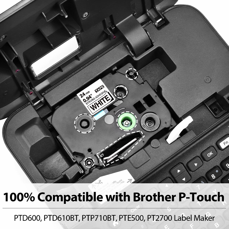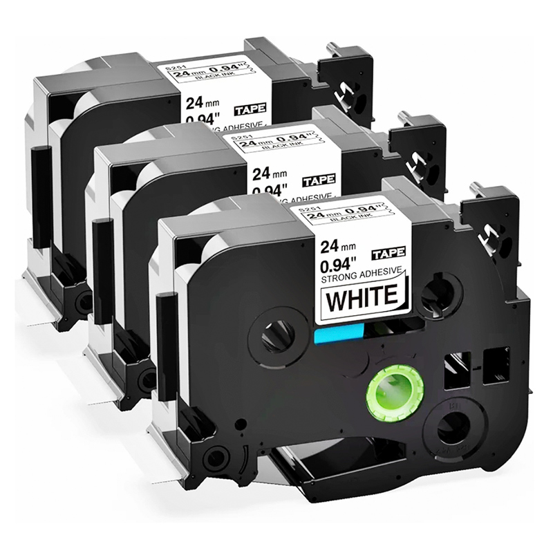 Cinta Brother Tze-S251 Tz2-S251 24mm X 8mts. Compatible Nuevo Super Adhesiva Letra negro sobre Blanco, es extra fuerte y están diseñadas para durar incluso bajo condiciones extremas y son capaces de aguantar temperaturas extremas, luz solar, agua, sustancias químicas o la abrasión.