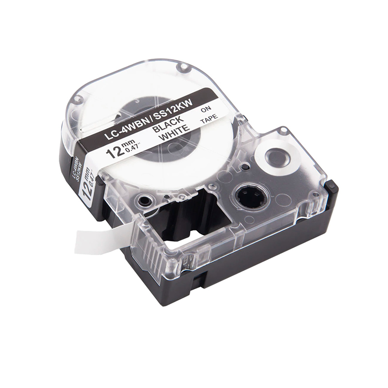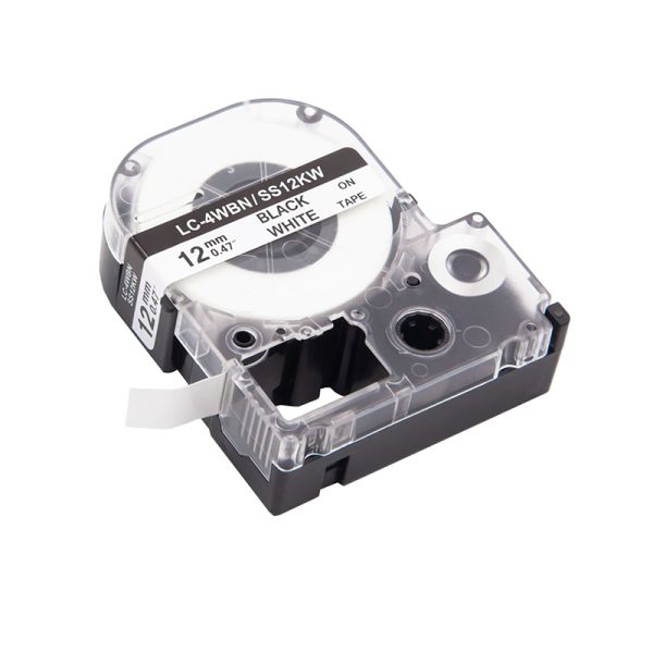 Cinta Epson Lk-4wbn Lc-4wbn ss12kw 12mm x 9mts. Compatible Nuevo, cuenta con un proceso de cinta laminada exclusiva y adhesivo de alta calidad, te ofrece calidad de impresión en color Negro sobre Blanco nítido y radiante.